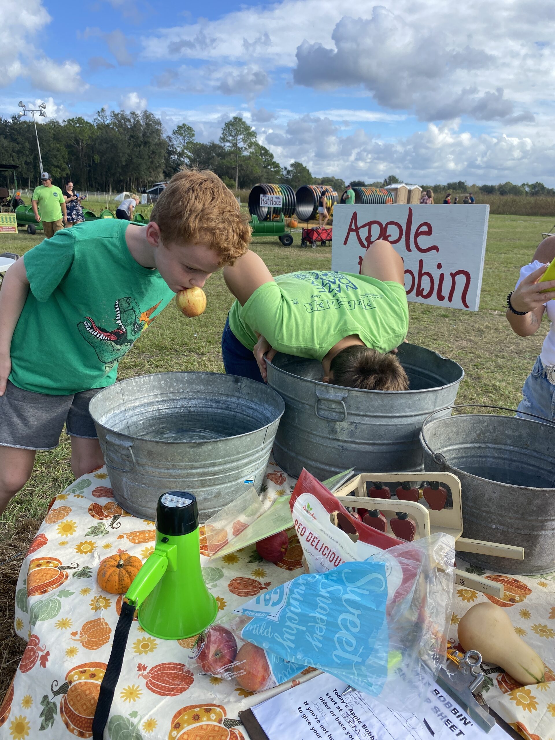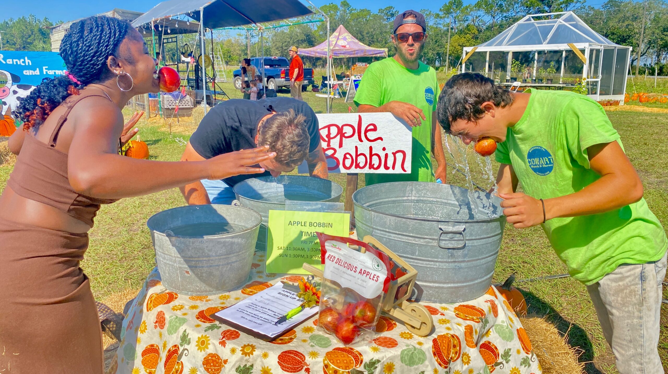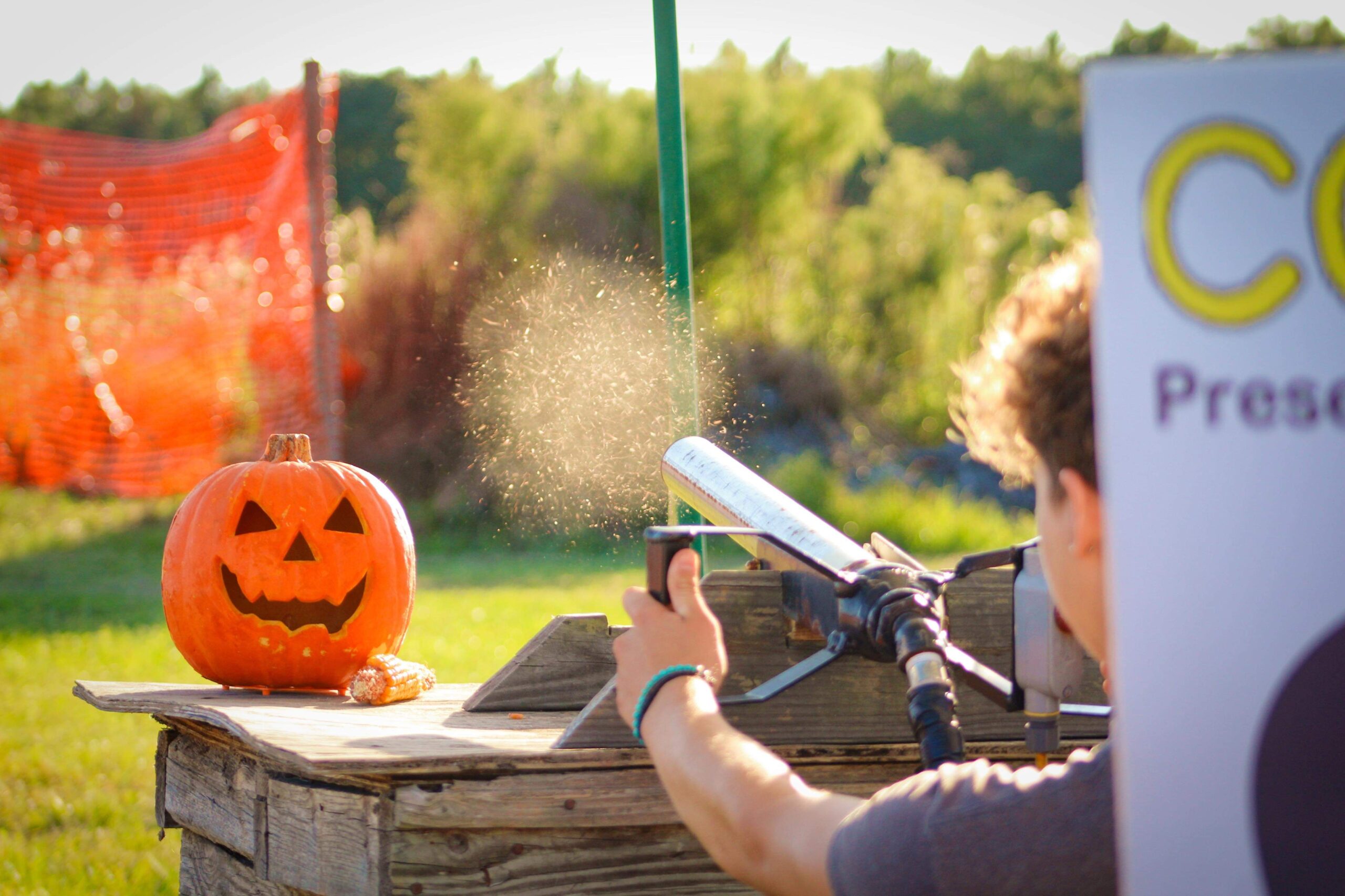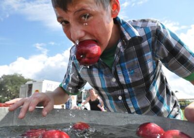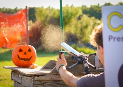 Aim for the bullseye at our High Pressurized Corn Cannon! (1st shot free w/entry then $2 per shot) APPLE BOBBIN, SACK RACES, AND PUMPKIN PIE EATING Contests!