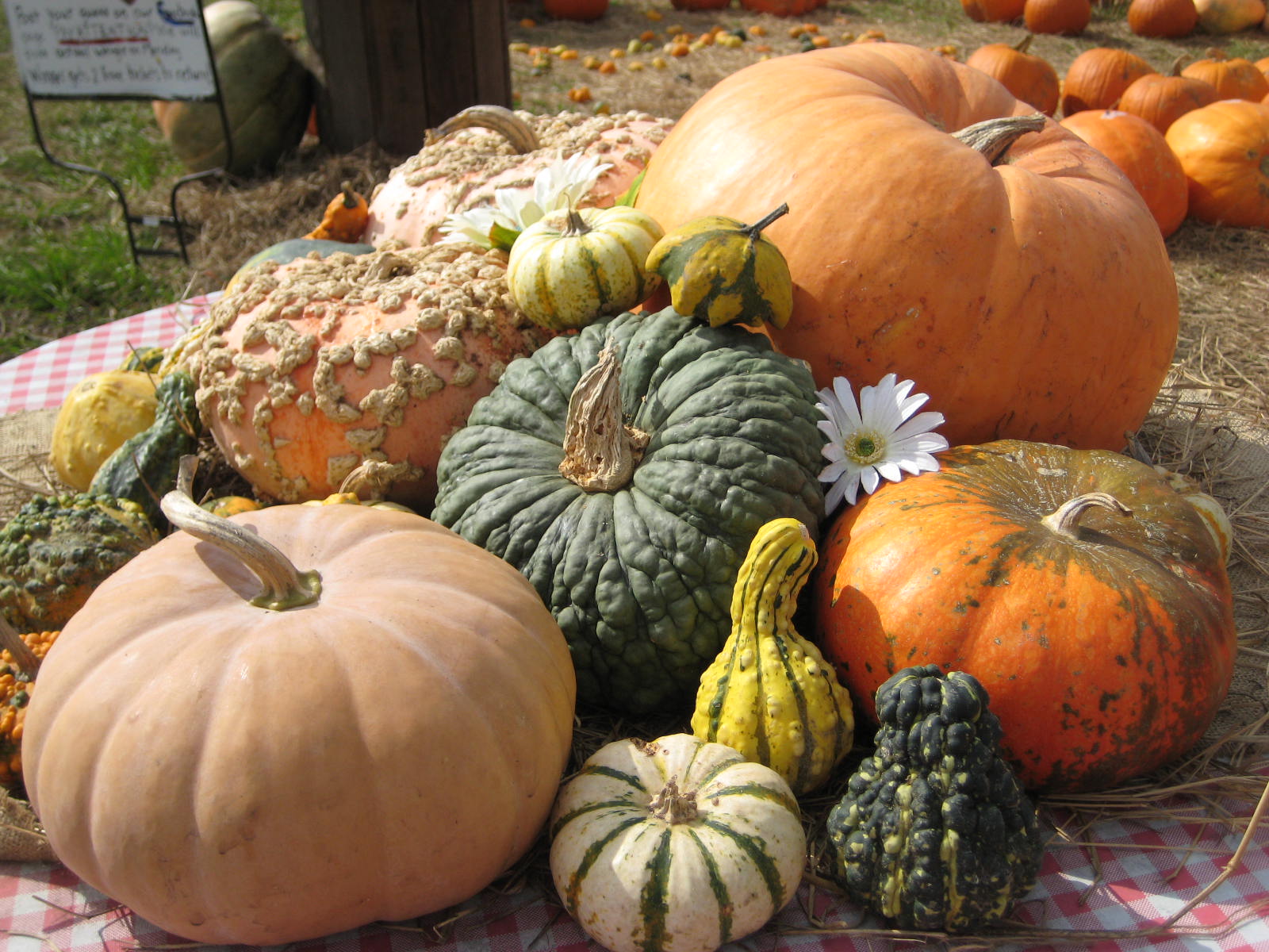 Pick the perfect carver or edible pumpkin at our Pumpkin Patch with lots of sunflowers and of picture opportunities! Some pumpkins grown right here on our farm.